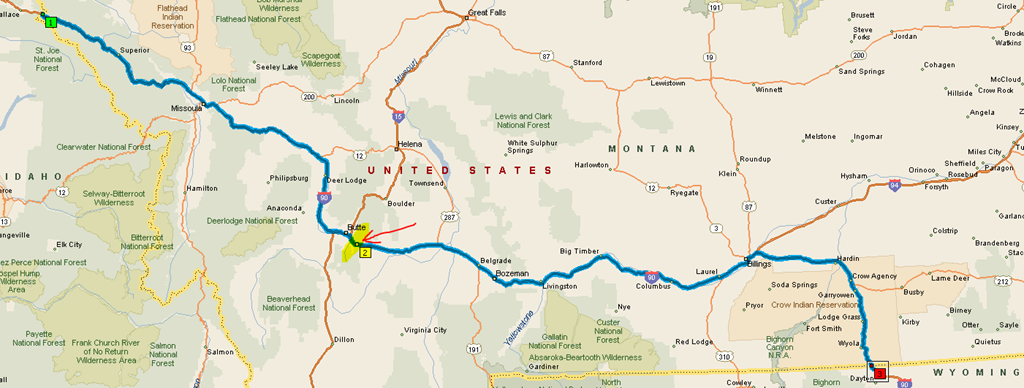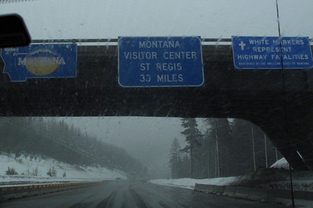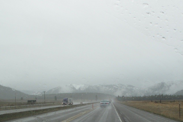 209pm – We enter Montana and from here we go to lower altitudes. No sign of dryer weather though.