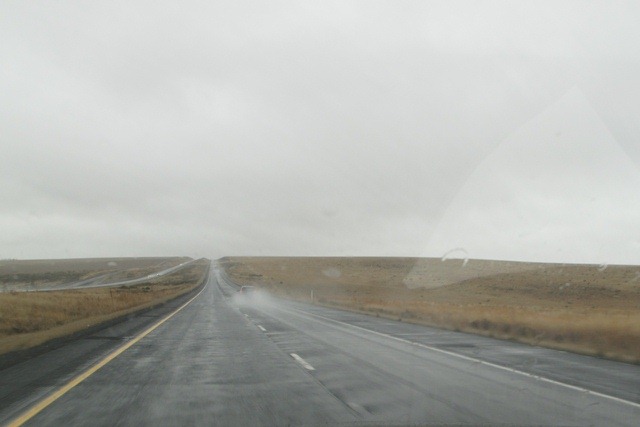 754am – Leaving the snow behind us we drive into the flatlands of Eastern Washington behind in the rain shadow of the mountains. Still very cloudy though.