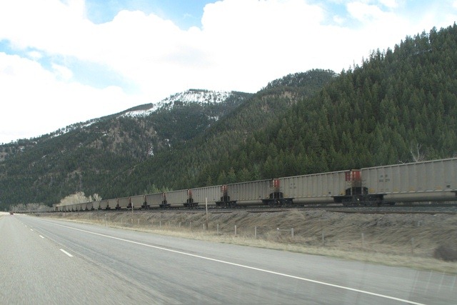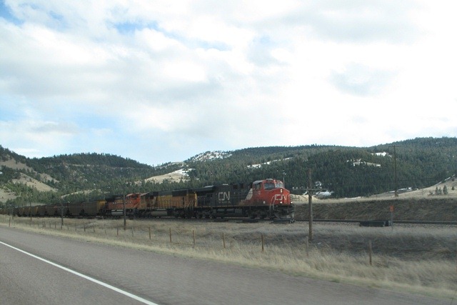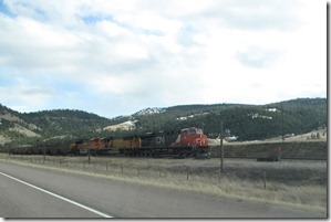4:06pm – We have been driving along railroad tracks for most of our route so far, and now we finally encounter a train. These are tracks that are part the Northern Pacific Railway that played a crucial role in opening up the West Coast of the United States. After the locomotive passes us it takes literally several minutes on ongoing freight wagons to pass….it seems it has no end to it. There must have been almost hundred of them…