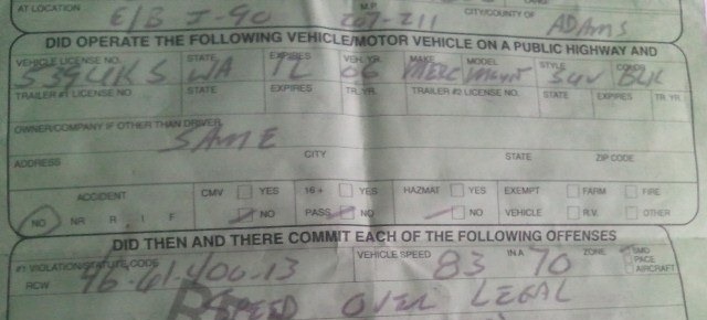 1030am – Oops…I’m speeding and didn’t see that guy with his flashing lights behind me…13 miles over the 70 mile limit…$144 bucks…damn those stretches of straight highway…